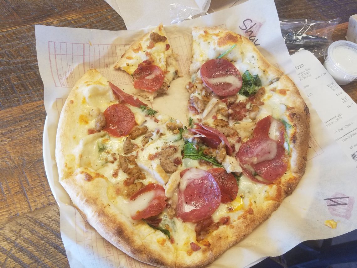 - Chinese Chicken pizza – it had an sweetish sauce with a creamy ranch mixed in and chicken and peanuts (remember to add the peanuts). It’s sounds really odd…